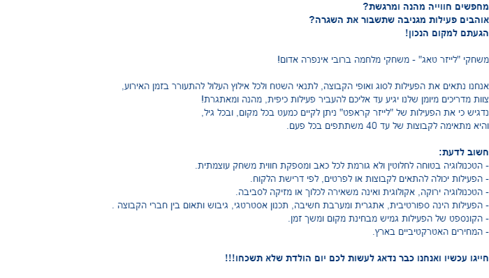 פעילות חווייתית ומאתגרת בסגנון הישרדות! בואו להיות השורדים האחרונים בהפעלה מהסרטים.
